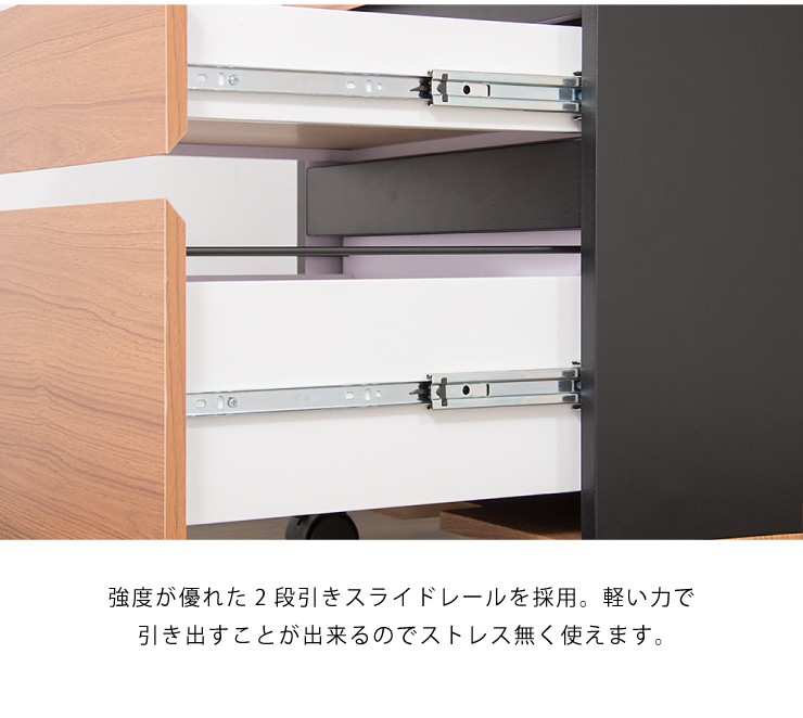 合成樹脂化粧繊維板(塩化ビニル樹脂)、フレーム:金属(鋼)エポキシ樹脂塗装、MDFボード(天板15mm)、フルオープンスチールレール、PVCシート、スチール