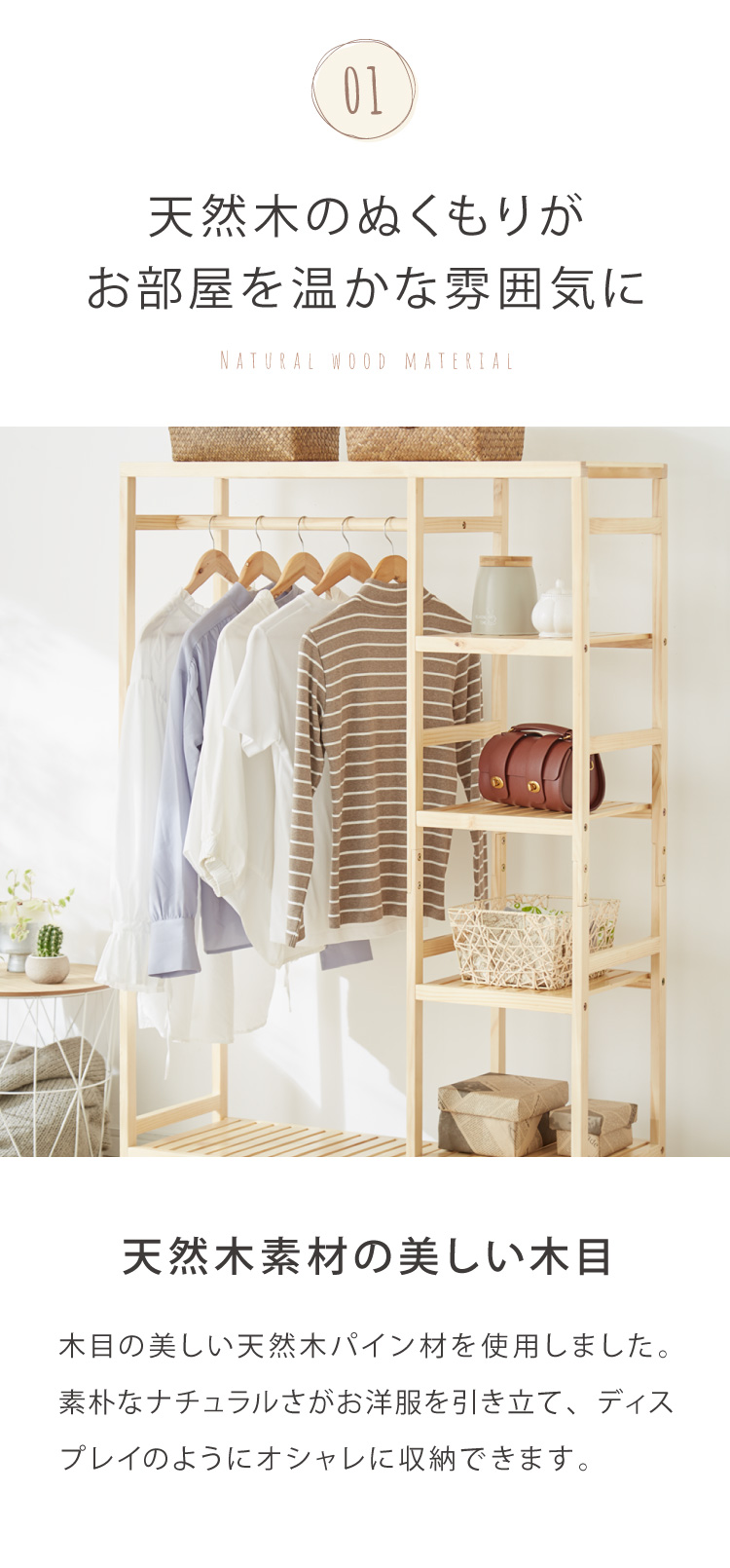 【天然木ハンガーラック】