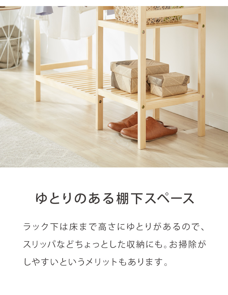 天然木棚付きハンガーラック