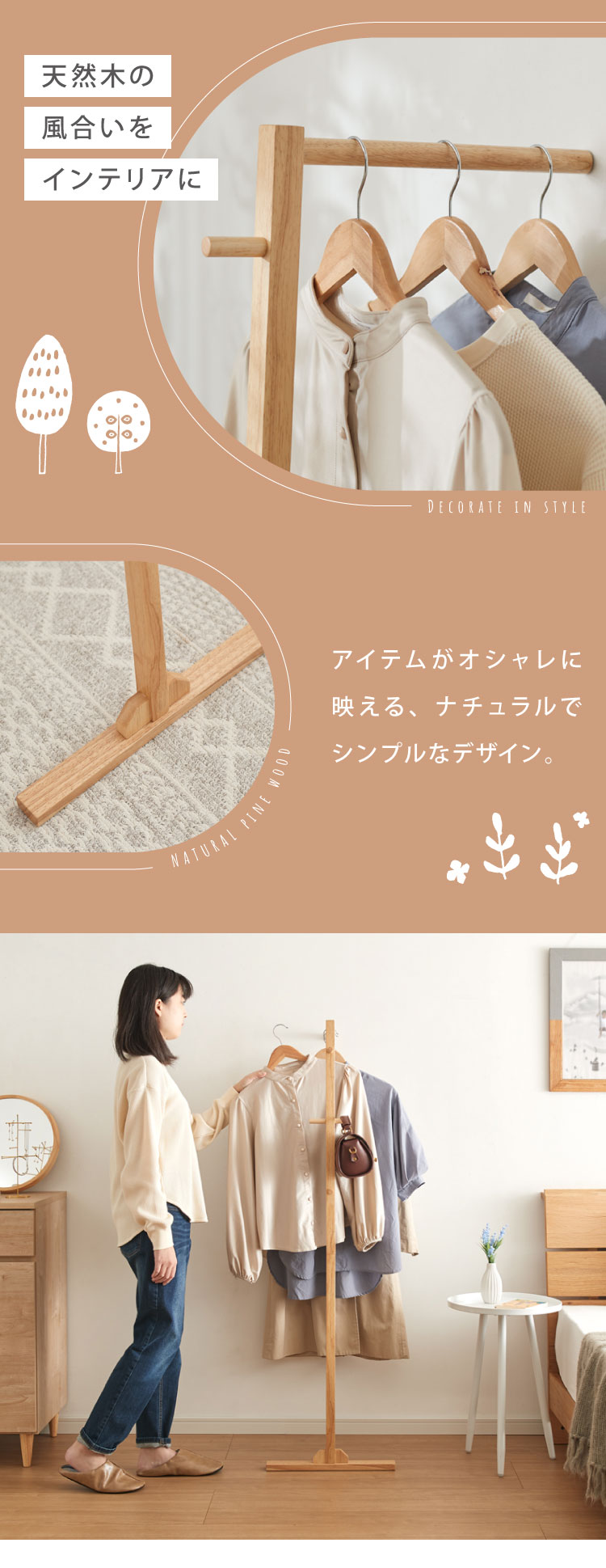 【天然木ハンガーラック】