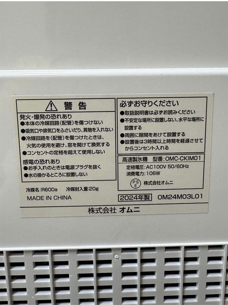 製氷時間:初回約10分(2回目以降約7分)