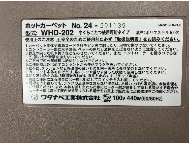 お気入りのホットカーペットカバーを今年もそのまま使いたい方のために本体のみをご用意しました。