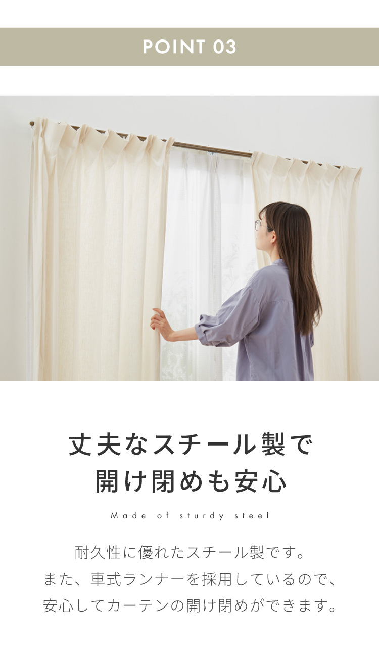 カーテンレール、既製品、スチール製、シングル、ダブル、ホテル、高層マンション、高層ビル、タワーマンション、事務所、レストラン、おすすめ、ホテル、民泊、在宅ワーク、テレワーク、オフィス、コワーキングスペース、窓回り、窓、戸建て、一軒家、新築、ビジネスホテル、リゾートホテル、賃貸、住宅、団地、都心、モダン、クラシック、ナチュラル、和室、寝室、子供部屋、社宅、寮、社員寮、カーテン、一人暮らし、かっこいい、プライベート、プライバシー、安心、安全、高品質、自宅、別荘、ペントハウス、社長室、新生活、上京、スマート、シンプル