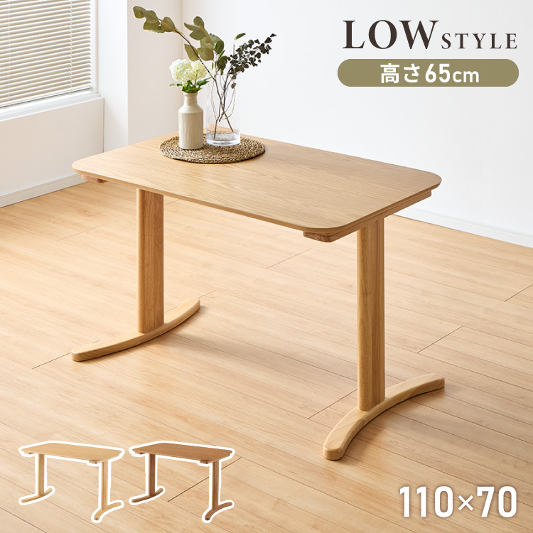 高さ65cm ダイニングテーブル 110×70cm T字脚 天然木 幅110 奥行き70 オーク突板 ナチュラル 木製 リビング ダイニング パソコンデスク つくえ 机