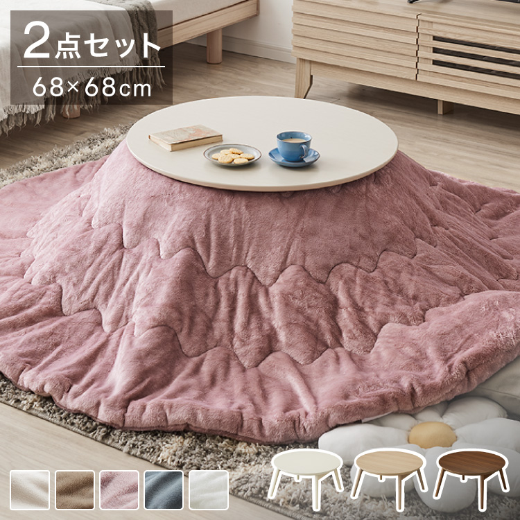 カジュアルこたつ 布団付き 2点セット 円形テーブル+掛け布団 幅68cm 折れ脚 炬燵 コタツ 北欧 メレンゲタッチ とろけるこたつ布団 ふわとろ 代引不可