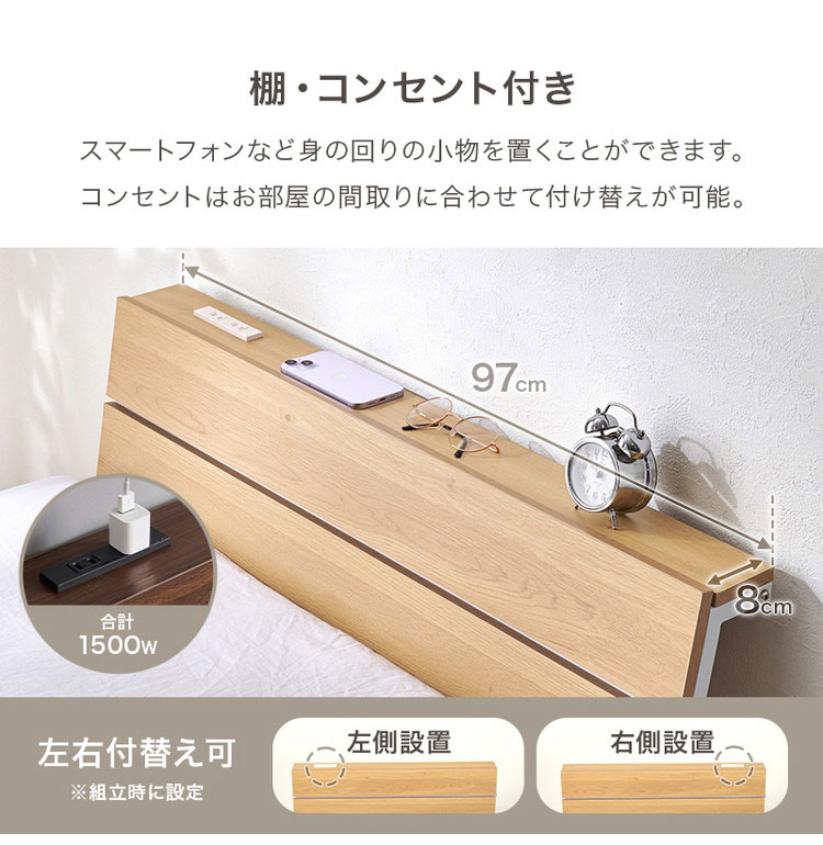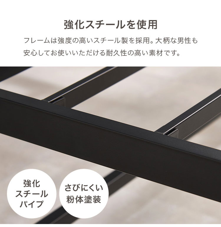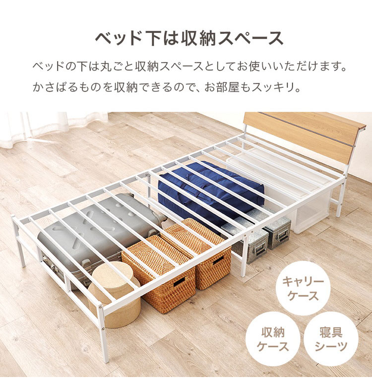耐荷重300kg 頑丈スチールベッド シングル 棚コンセント付き ヘッドボード付き ベッドフレーム スチールベッド お掃除ロボット対応 代引不可