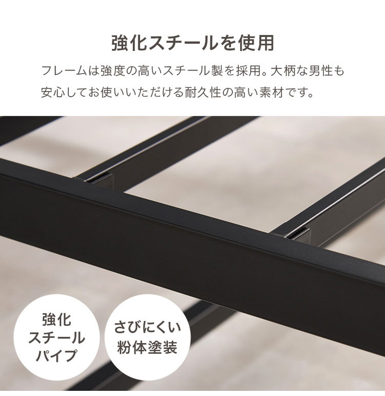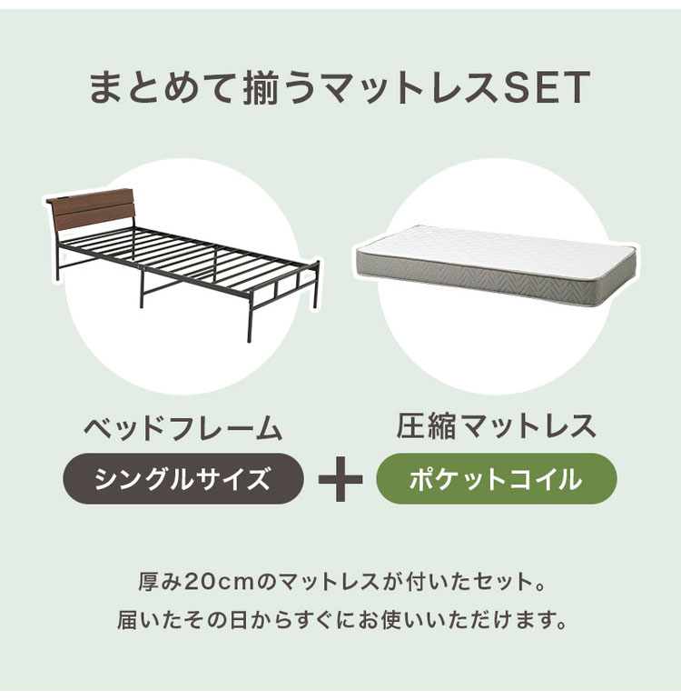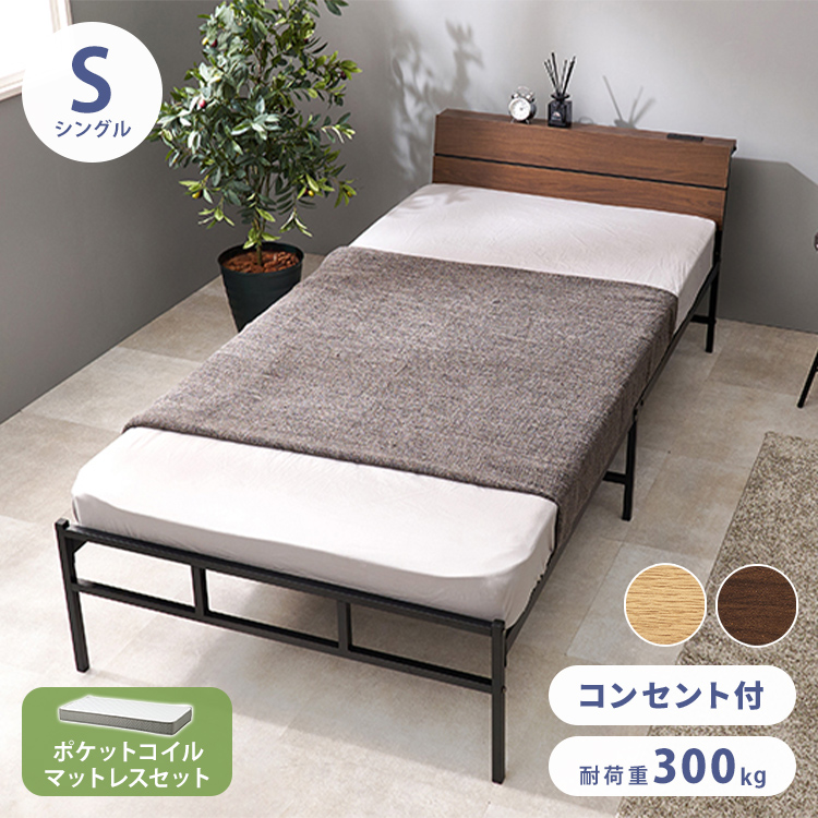 耐荷重300kg 頑丈スチールベッド シングル ポケットコイルマットレス付き 棚コンセント付き ヘッドボード付き ベッドフレーム スチールベッド 代引不可