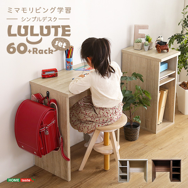 シンプル デスク 60cm幅+サイドラック30cm幅 LULUTE ルルテ デスク オープンラック セット 収納付き 木製 木目 おしゃれ 北欧 代引不可