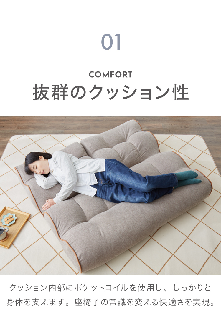 従来のフロアチェアとしてはもちろんコンパクトソファのような感覚でお使いすることが出来ます。