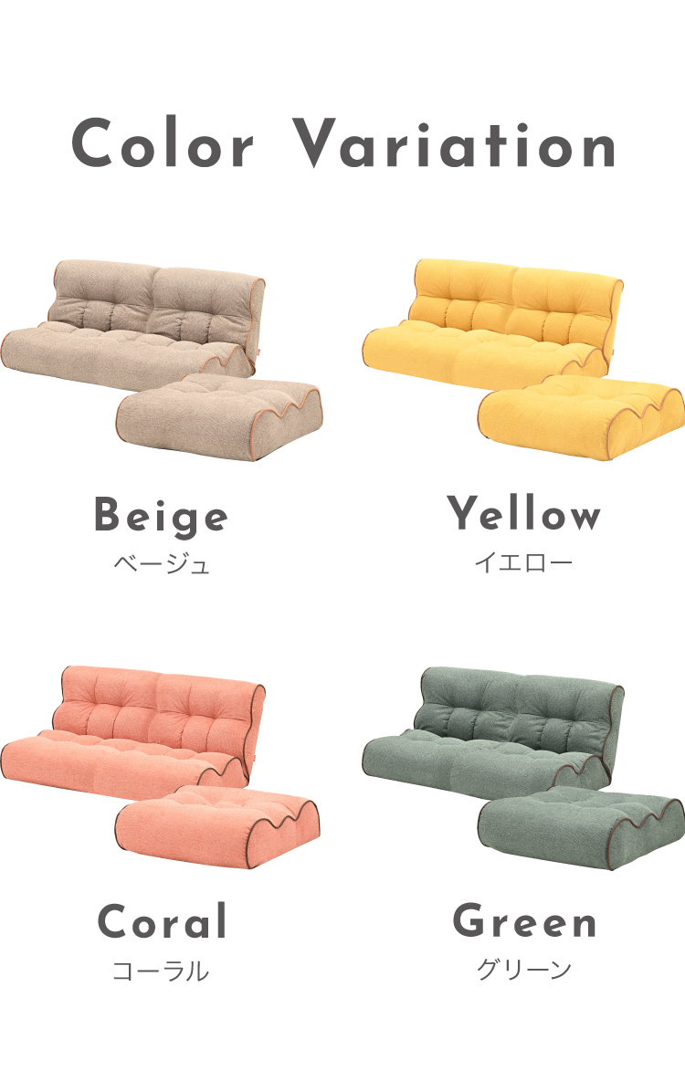 サイズ:2Pフロアチェア:幅144×奥行80〜128×高さ25〜64cm(座面高さ25cm)
