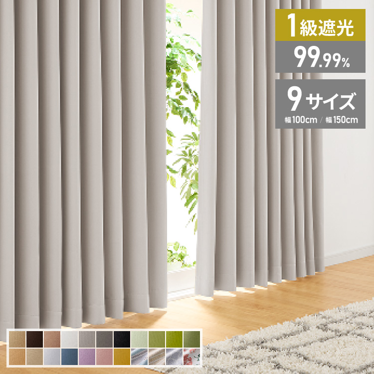 カーテン 遮光 1級 2級 2枚入 1枚入 22色×9サイズ 遮光率99.99% 一級 洗える タッセル付き 遮熱 断熱 保温 節電 省エネ UVカット おしゃれ 防音