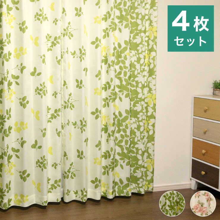 カーテン 2カラー×4サイズ 4枚セット 花柄 フラワー アシンメトリー ウォッシャブル 遮熱 カーテン 遮熱カーテン 洗える 代引不可