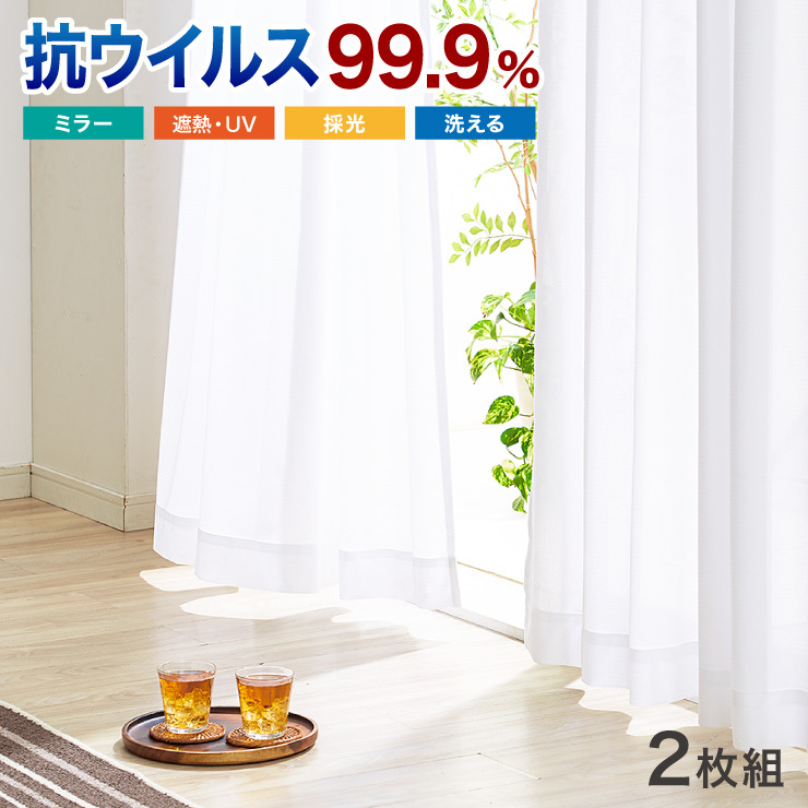 ミラーレースカーテン 抗ウイルス加工 2枚組 レース 選べる5サイズ 幅100cm 丈108cm~ 丈228cm 洗える ウォッシャブル おしゃれ 代引不可