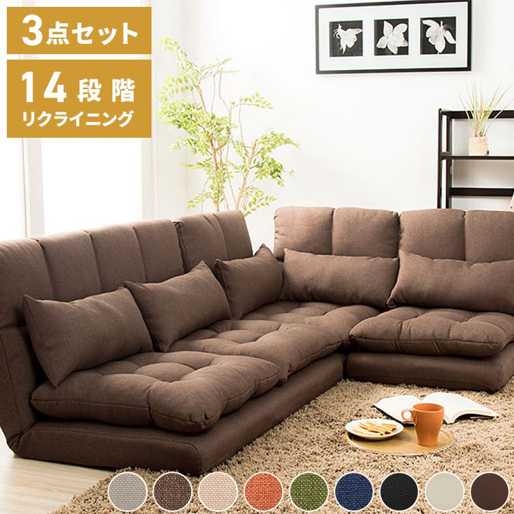 ソファ ふっくらコーナーソファ3点セット 14段階 リクライニング 2人掛け 3人掛け 北欧 おしゃれ ソファ リクライニングソファ ローソファ