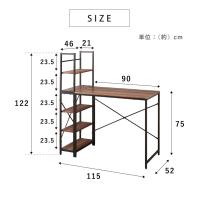 デスク、パソコンデスク、学習デスク、学習机、棚付き、PCデスク、5段、幅115cm、ラック付きデスク、ハイタイプ、収納、机、木製、オフィスデスク、ワークデスク、在宅勤務、テレワーク、ミッドセンチュリー、韓国インテリア、韓国、テーブル、学習テーブル