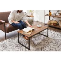 センターテーブル おしゃれ 木目 スチール ブラウン リビング テレワーク 在宅勤務 一人暮らし 新生活ローテーブル 北欧 ヴィンテージ