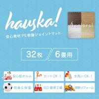 ジョイントマット 木目調 大判 60cm 32枚 hauska! 6畳 安心素材 抗菌 防臭 サイドパーツ付 フロアマット 床暖房対応 カーペット 低ホルムアルデヒド