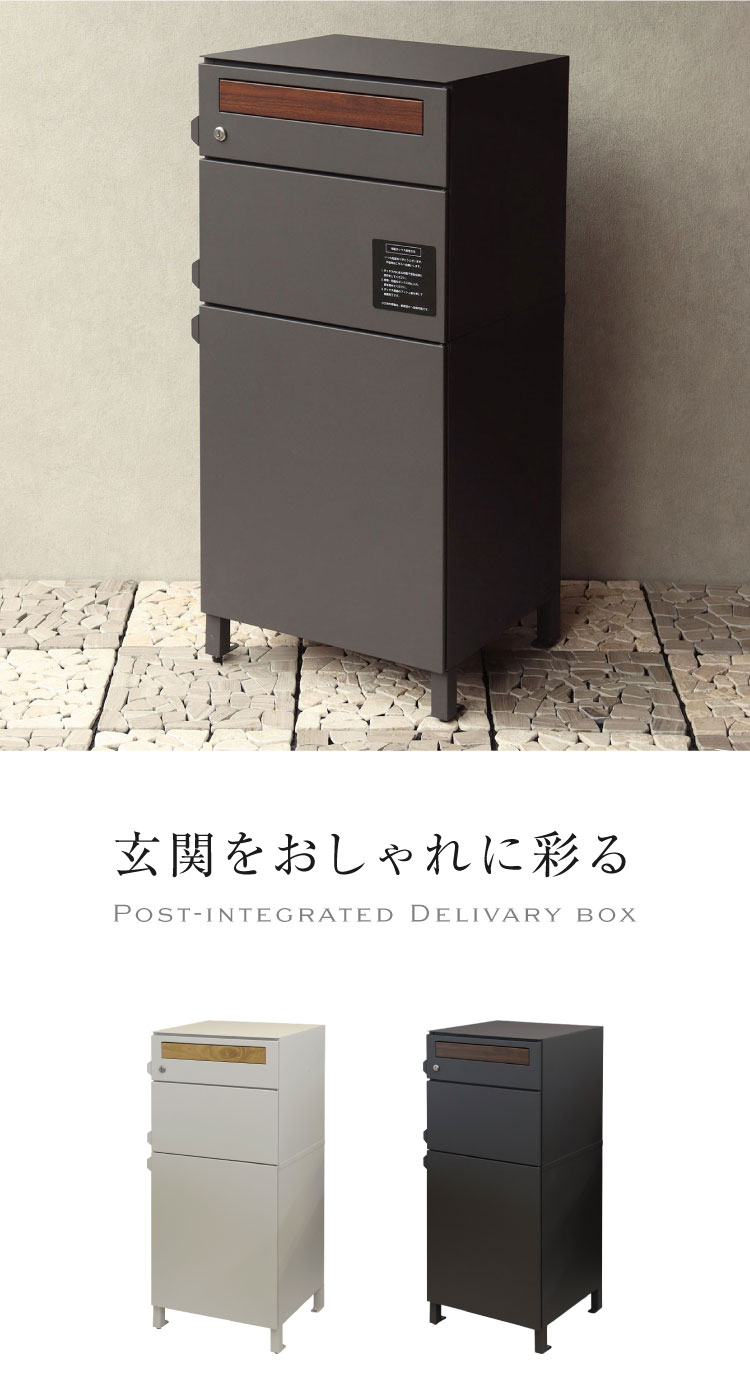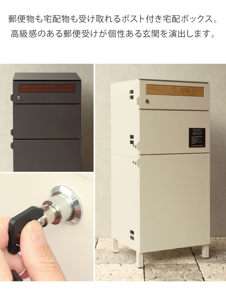 ポスト 宅配ボックス 一体型 シリンダー錠 ポスト付き 大容量 大型 郵便ポスト 郵便受け 一戸建て用 置き配ボックス スタンドポスト 置き型ポスト