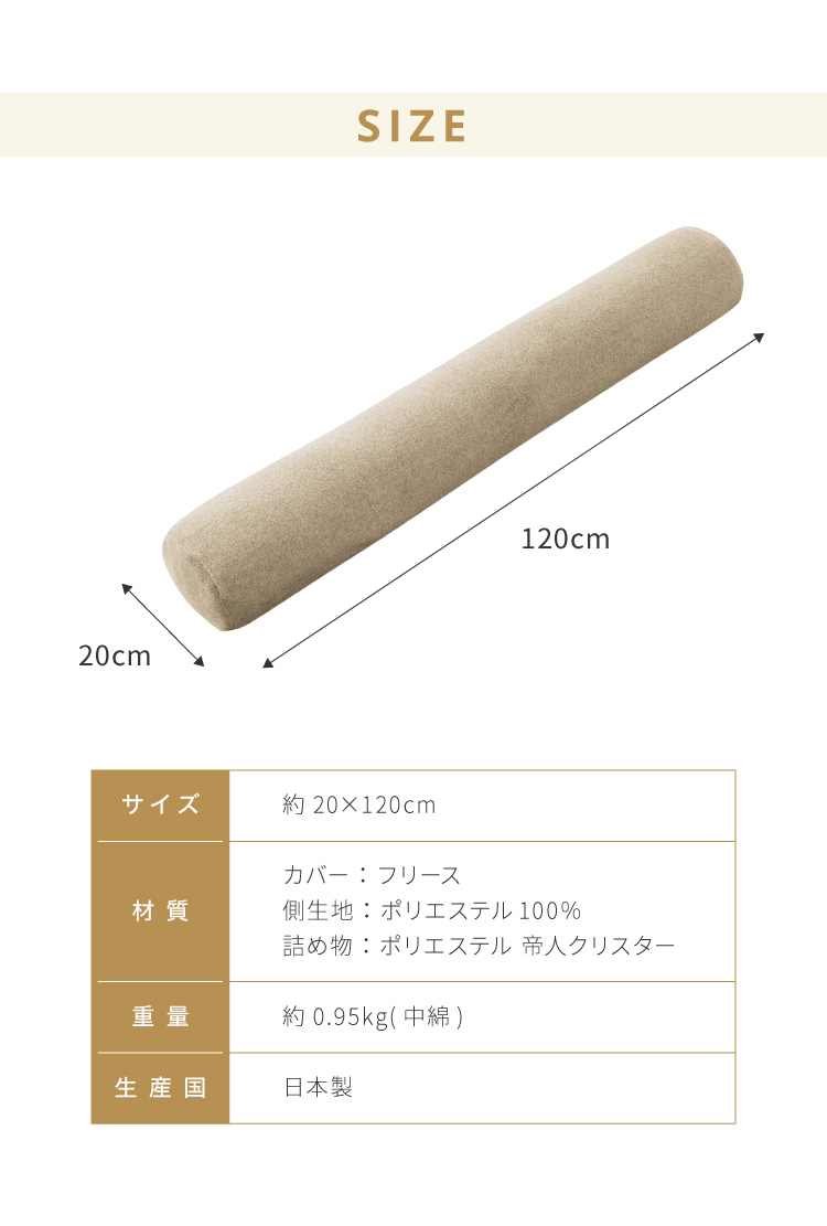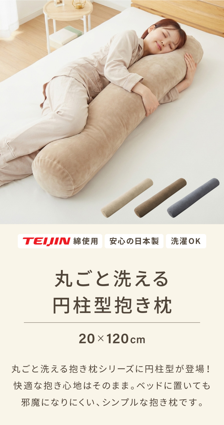 抱き枕 円柱クッション 120cm ロング抱き枕 帝人クリスター 円筒型 筒型 だきまくら 大きい ふわふわ 柔らかい 横向き寝 快眠 男女兼用 快眠サポート