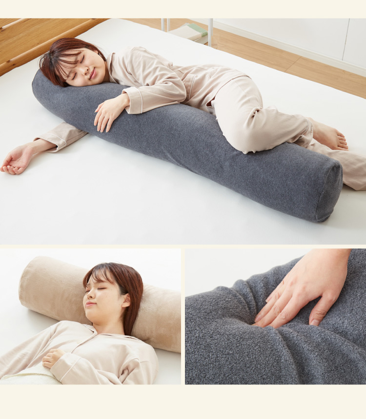 ベッドの上でも邪魔にならない、円柱型のロング抱き枕。