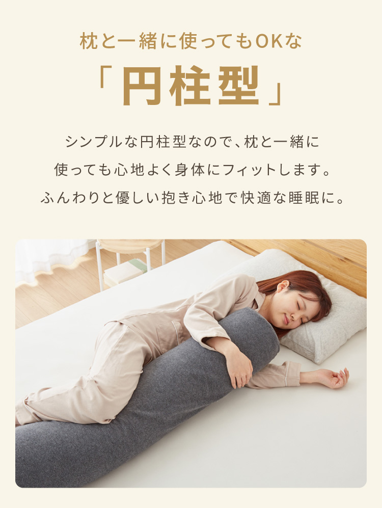 円柱型、筒形クッション、ロング抱き枕、帝人クリスター、ふわふわクッション、柔らかいクッション、横向き寝、大きい抱き枕、長い枕、妊婦用抱き枕、マタニティ抱き枕、睡眠サポート、快眠、省スペース背あて、足枕、膝下枕、安眠、ギフト、プレゼント