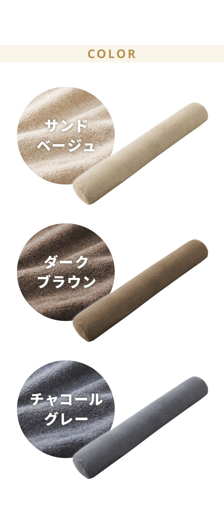 抱き枕・足枕・背当てなど多用途に使えるボルスターピローです。