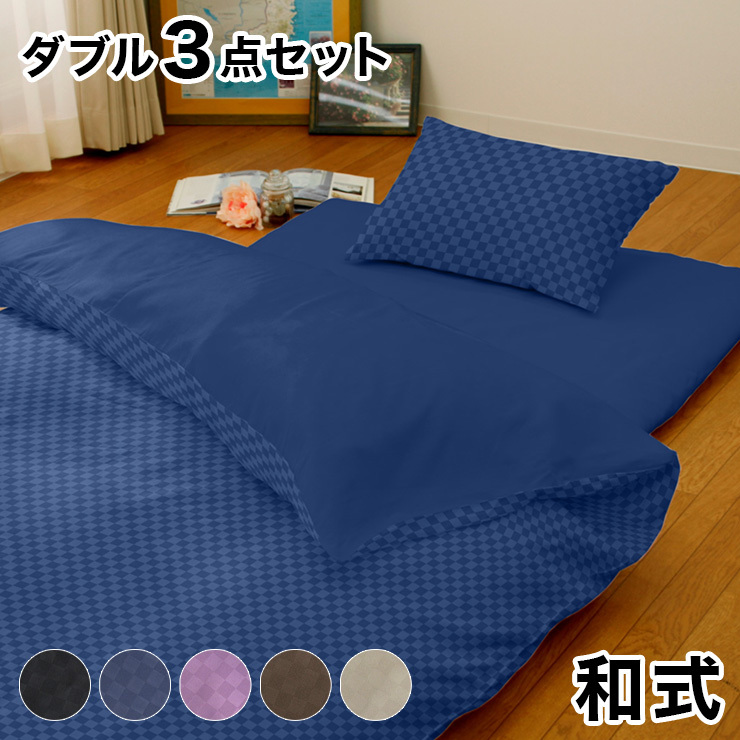 布団カバー セット 和式 おしゃれ ダブル 3点セット ホテルタイプ 北欧 洗える 洋式 柔らか 市松 ピーチスキン加工 サテン調 代引不可