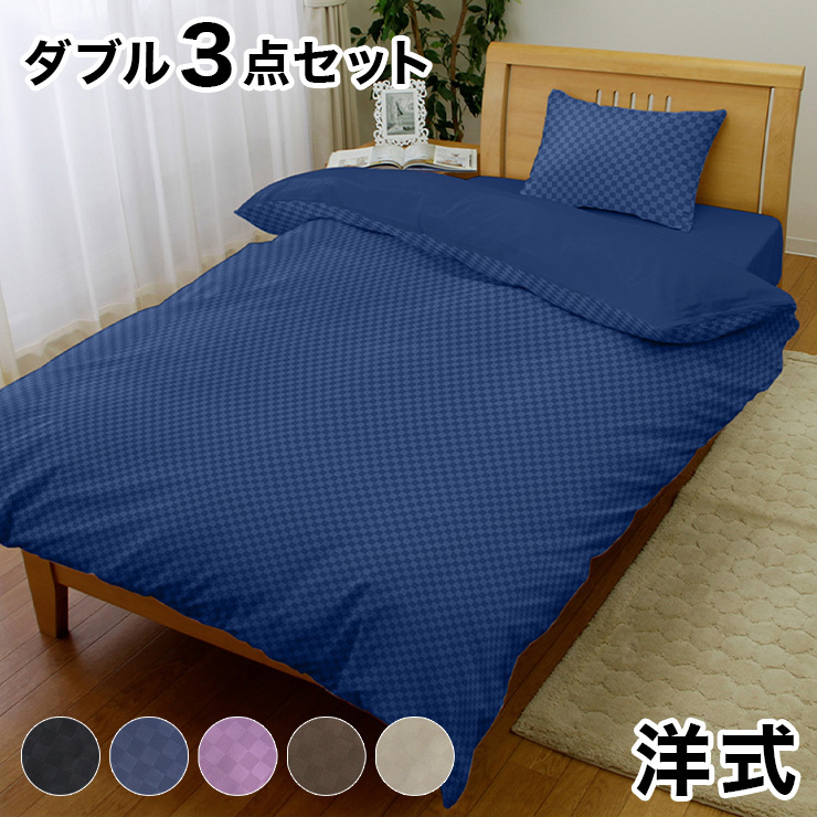 布団カバー セット 洋式 おしゃれ ダブル 3点セット ホテルタイプ 北欧 洗える 洋式 柔らか 市松 ピーチスキン加工 サテン調 代引不可