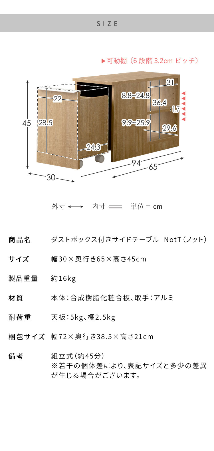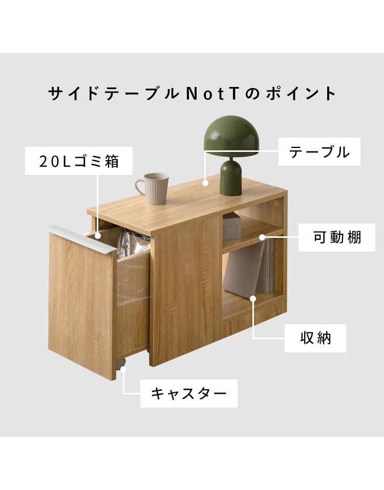 商品名 ダストボックス付きサイドテーブル NotT(ノット)
