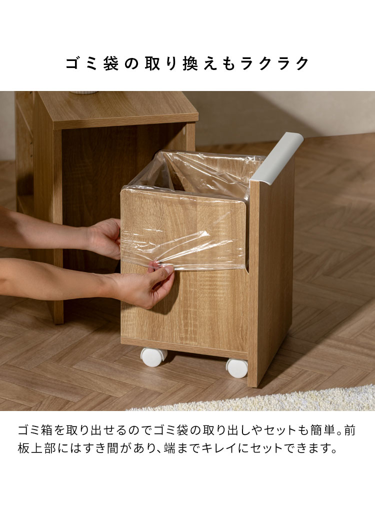 ダストボックス付きサイドテーブル サイドテーブル ゴミ箱 ダストボックス ソファ横 リビング 20L 可動棚 収納 キャスター付き 木製 木製デザイン 代引不可