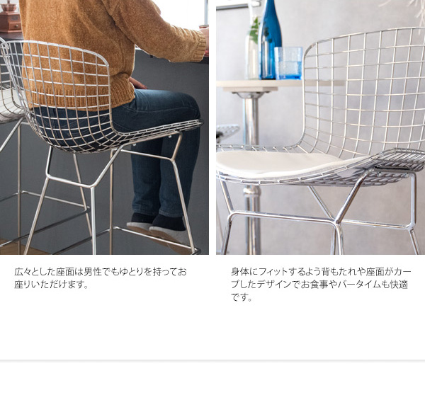 ハリー・ベルトイア ワイヤーハイスツール カウンターチェア リプロダクト ワイヤーメッシュチェア デザイナーズチェア ミッドセンチュリー おしゃれ 代引不可
