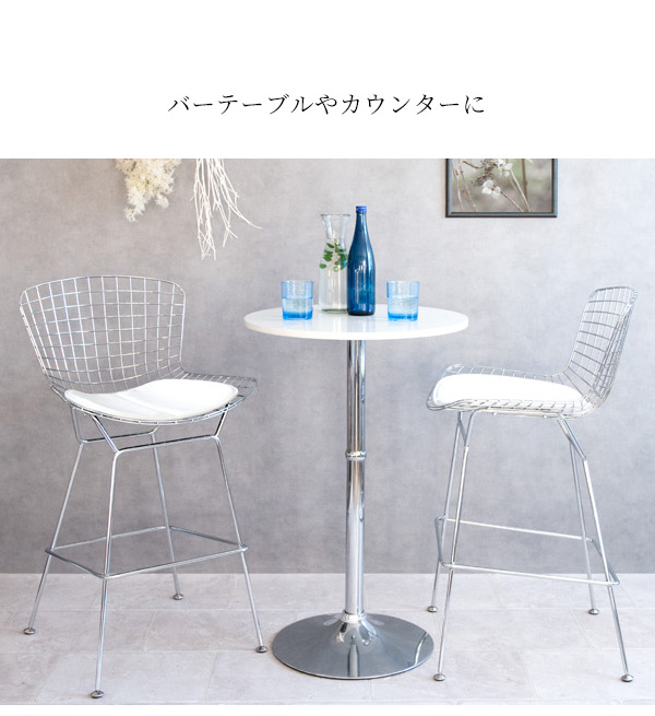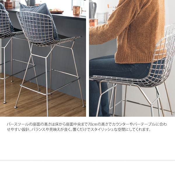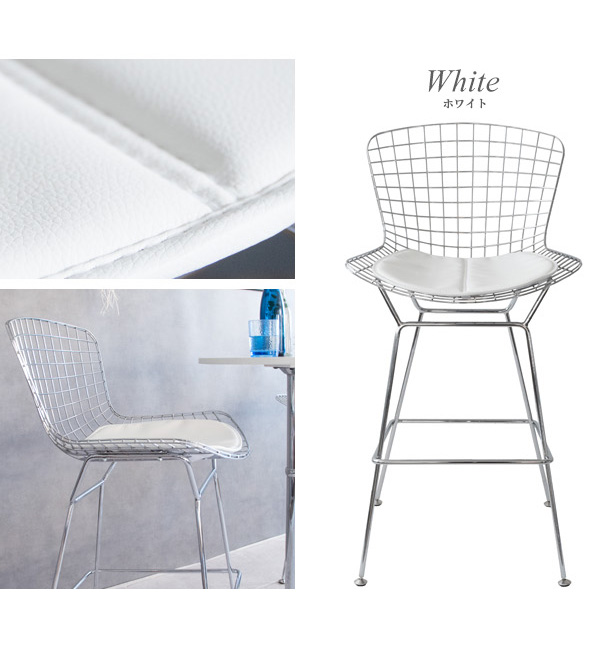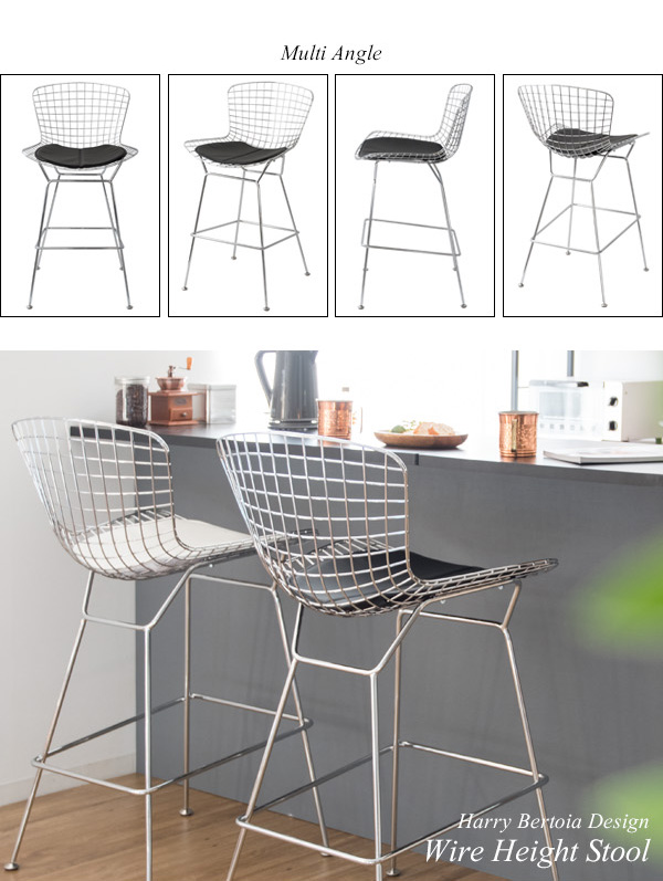 イームズやジョージ・ネルソンと並ぶ、ミッドセンチュリー期の代表的なデザイナー、ハリー・ベルトイアがデザインしたワイヤーハイスツールのリプロダクト品。