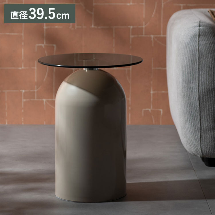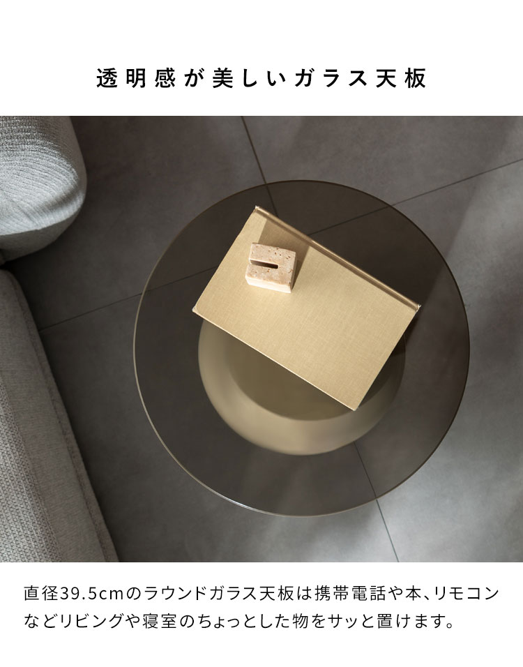 サイドテーブル テーブル ガラス天板 コンパクト ソファ ベッドサイド ソファ横 上品 かわいい ラウンド 直径39.5cm スチール コンパクトサイズ 代引不可