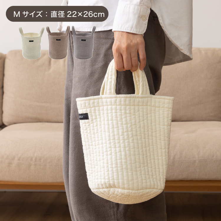 イブル 丸洗いできるマルチバスケットバッグ Mサイズ 綿100% ミニトートバッグ お買い物バッグ 洗える 持ち運び 小物 小さめ 犬 散歩 mofua モフア