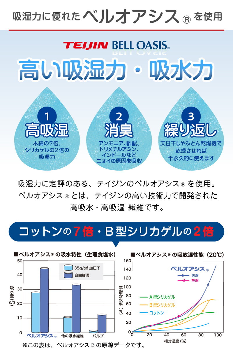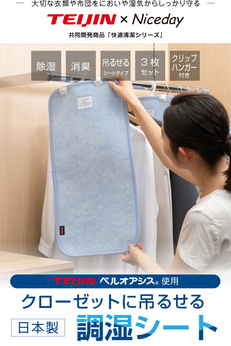 3枚組 調湿シート 30×60cm クローゼットに吊るせる 日本製 TEIJIN ベルオアシス R 使用 国産 吸湿シート 吸湿シート