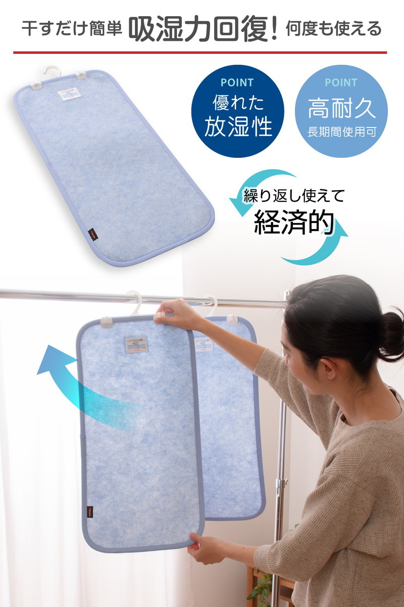 調湿シート、30×60cm、クローゼットに吊るせる、日本製、吸水マット、調湿マット、除湿マット、除湿シート、湿気取り、タンス、収納、新生活、カビ、吸水