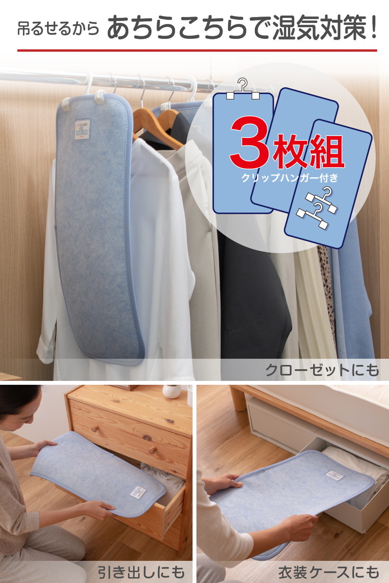 クローゼットやタンスで大切な衣類の湿気対策に最適です。