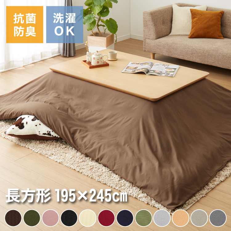 選べる12色 こたつ掛け布団カバー 長方形 195×245cm 抗菌 防臭 洗える ウォッシャブル 省スペース あったか 北欧 おしゃれ 無地 掛け布団カバー