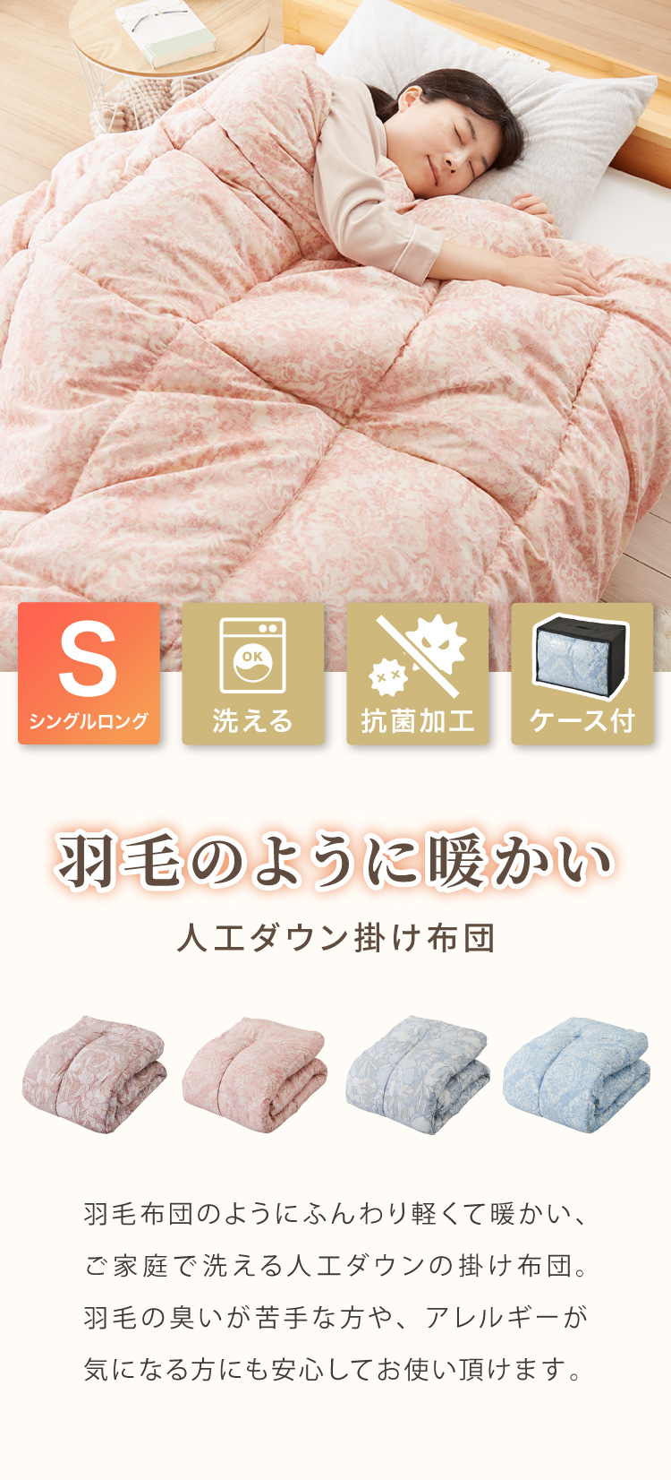 羽毛タッチ 掛け布団 収納ケース付き シングル 中綿1.4kg マイクロ綿 羽毛 掛布団 布団 かけふとん 羽毛 布団 収納袋 収納 軽い 暖かい ふんわり