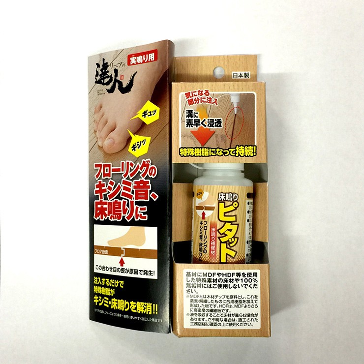 ※MDFやHDF等の特殊素材の床材や100%無垢材にはご使用しないでください。 穴をあけずに注入するだけで床鳴り解消