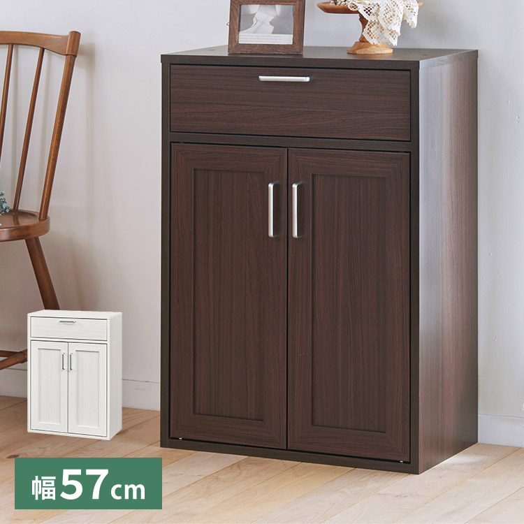 白井産業 キャビネット 食器棚 幅57cm 高さ80cm ホワイト 白木目 扉付 引出付き 組み合わせて使える フルニコ 代引不可