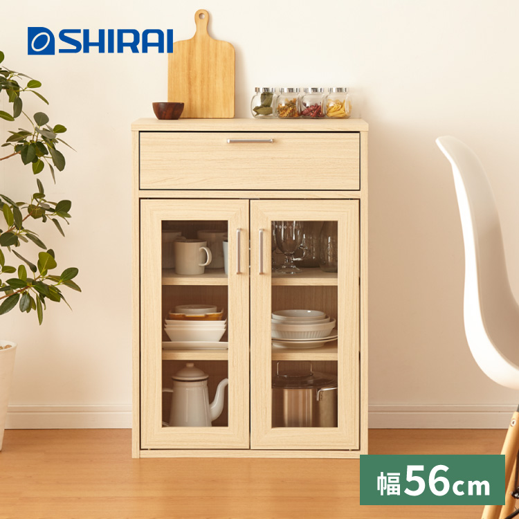 キャビネット 引き出し付き フルニコ 幅56.6cm ナチュラル 大容量 収納 高さ80cm ガラス扉 シンプル 北欧 おしゃれ 代引不可