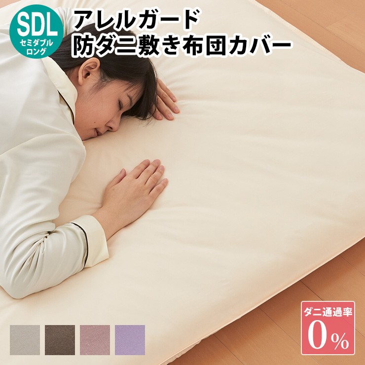 アレルガード 敷布団カバー セミダブルロング 125×215cm 防ダニ 高密度生地使用 洗える 敷き布団カバー 花粉対策 代引不可