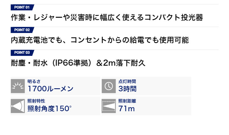 ジェントス コンパクトLED投光器 GZ-320 Ganz ガンツ 耐塵 耐水 IP66準拠 AC電源 充電池兼用