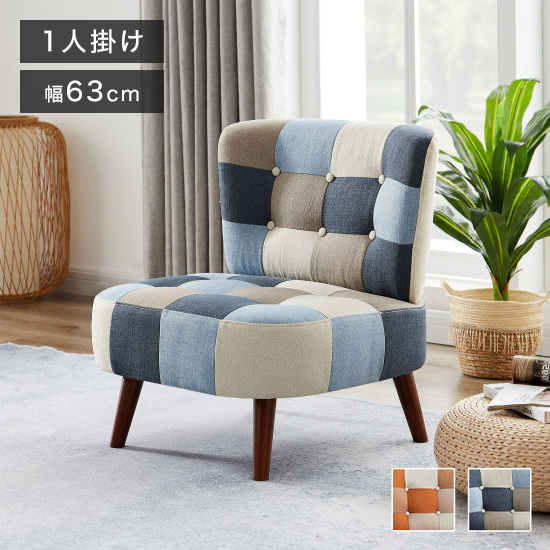 ソファ パッチワークソファ 1人掛け 肘無し 幅63cm ソファ 一人掛け ソファ パーソナルソファ パーソナルチェア 北欧 おしゃれ ナチュラル 代引不可