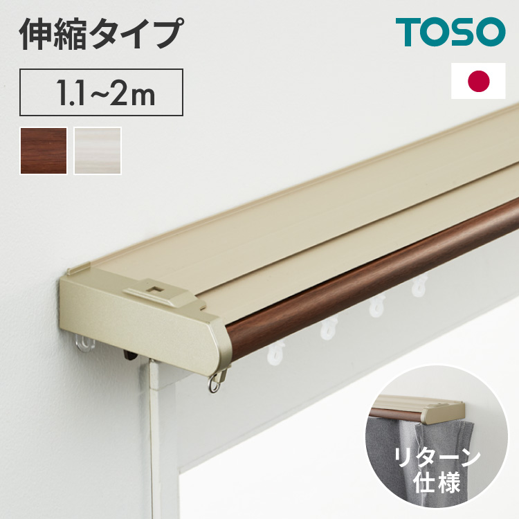 伸縮 遮光カーテンレール ダブル 1.1~2.0m TOSO カーテンレール カバートップ リターン仕様 光漏れ防止 簡単取り付け 遮光 遮音 静音 正面付け 白 代引不可