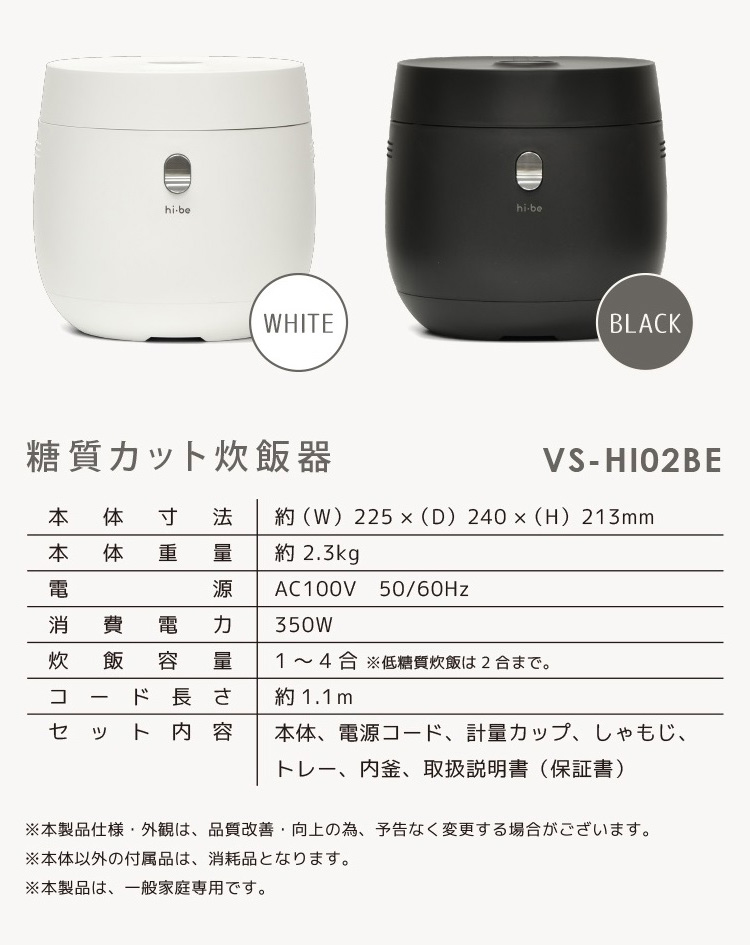 ベルソス 糖質カット炊飯器 4合 白米 玄米 ホワイト VS-HI02BE-WH 炊飯器 炊飯ジャー ごはん 糖質制限 低糖質 糖質カット おかゆ 保温 シンプル