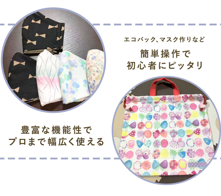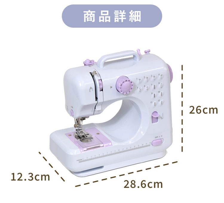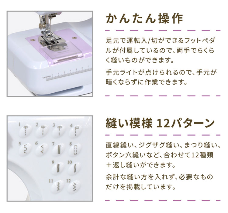 ●コンパクトサイズだけど、機能性が豊富、縫い模様12パターンもあり、プロまで幅広く使える。