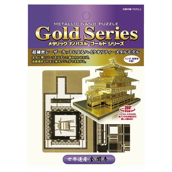 超細密レーザーカットによるハイクオリティーメタルモデル「メタリックナノパズル」に金閣寺が登場!メタルシートからパーツを取り外し、ペーパークラフトのように曲げたり、折ったり、差し込んでいくと、美しく輝くミニチュアの世界をお楽しみいただけます。