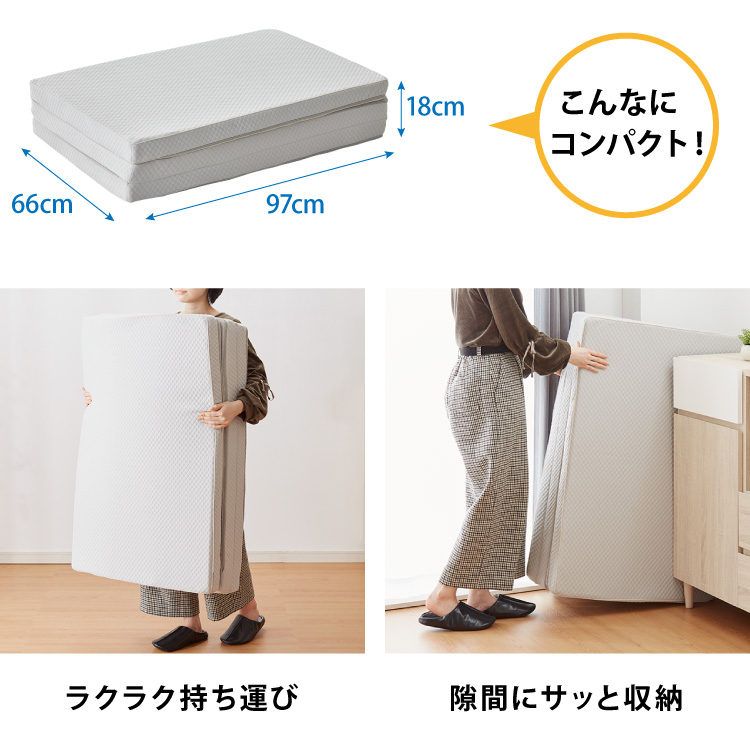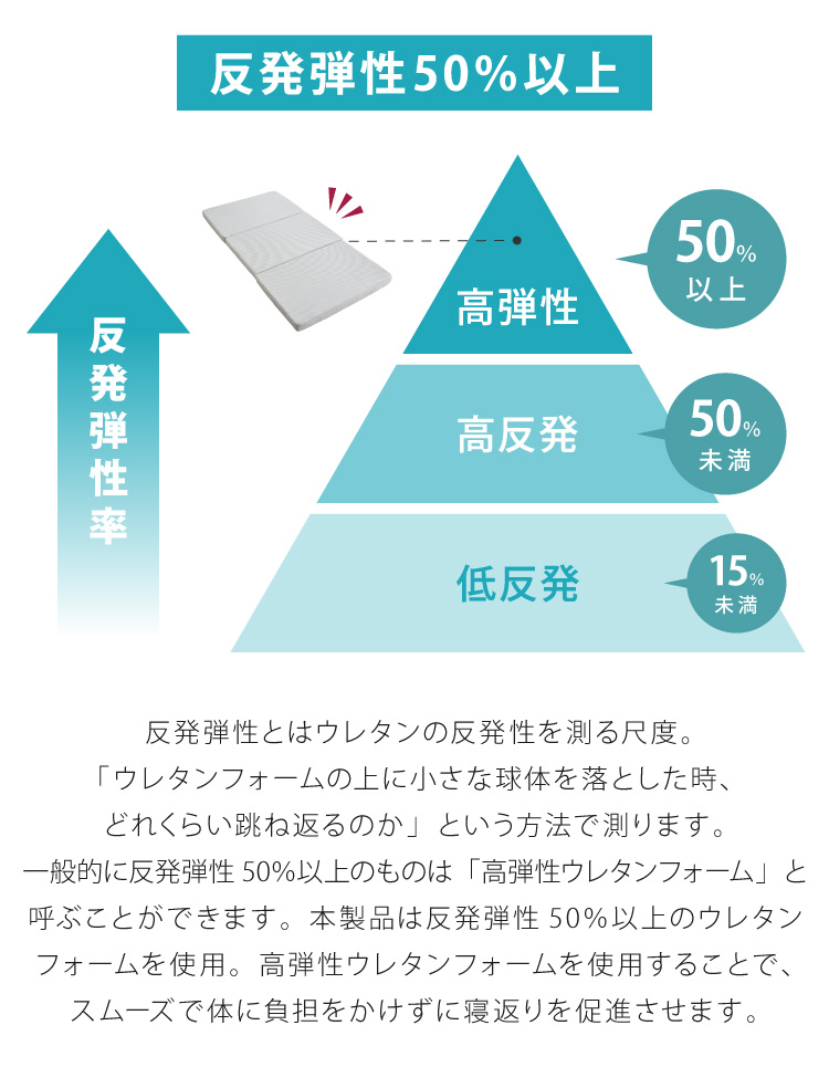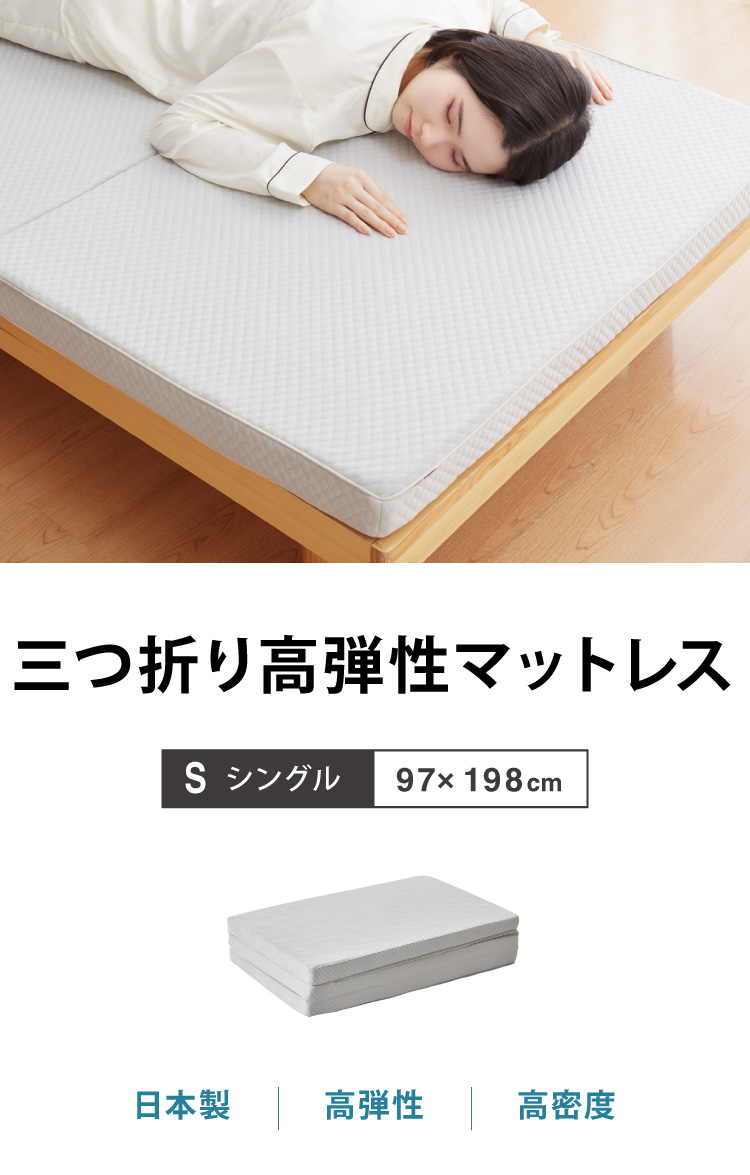 マットレス シングル 折りたたみ 日本製 三つ折り 高反発 硬め 150N 軽量 洗える ノンコイル 耐圧分散 寝返り 厚さ6cm コンパクト 硬い 高弾性 高密度 代引不可